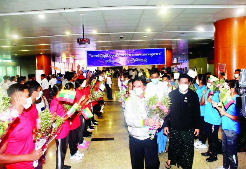 ၂၀၂၂ ခုနှစ် မေ ၁၂ ရက်မှ ၂၃ ရက်အထိ ဗီယက်နမ်နိုင်ငံ ဟနွိုင်းမြို့နှင့် အခြားဆက်စပ်မြို့များ၌ ကျင်းပနေသည့် (၃၁)ကြိမ်မြောက် အရှေ့တောင်အာရှ အားကစားပြိုင်ပွဲတွင် ဝင်ရောက်ယှဉ်ပြိုင်ခဲ့သော မြန်မာအားကစားသမားအဖွဲ့သည် ဖိတ်ကြားခံပုဂ္ဂိုလ်အဖြစ် တက်ရောက်ခဲ့သည့် မြန်မာနိုင်ငံ အိုလံပစ်ကော်မတီဥက္ကဋ္ဌ အားကစားနှင့် လူငယ်ရေးရာဝန်ကြီးဌာန ပြည်ထောင်စုဝန်ကြီး ဦးမင်းသိန်းဇံနှင့်အတူ မေ ၂၂ ရက်တွင် ရန်ကုန်အပြည်ပြည်ဆိုင်ရာလေဆိပ်သို့ မြန်မာ့လေကြောင်း စင်းလုံးငှားလေယာဉ်ဖြင့် ပြန်လည်ရောက်ရှိလာသည်။