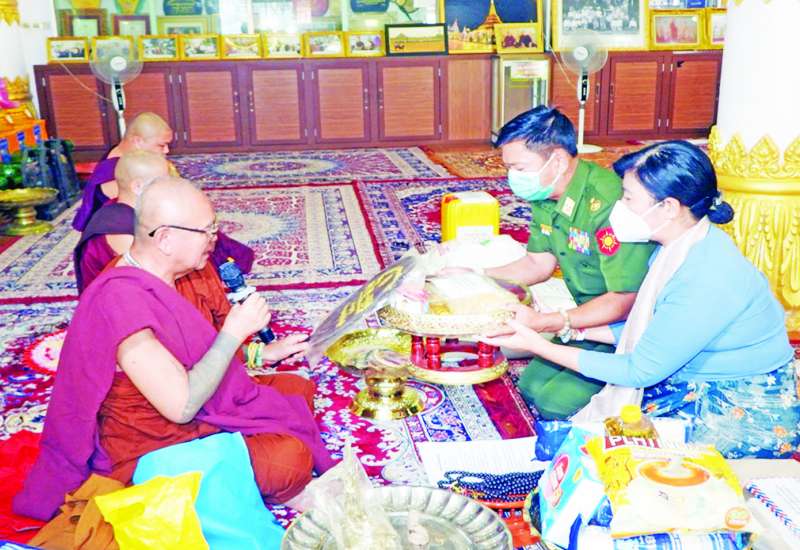 ပြည်ထဲရေးဝန်ကြီးဌာန တပ်ဖွဲ့ဝင်/ဝန်ထမ်း အရာထမ်းအမှုထမ်းမိသားစုများက မြို့နယ်အသီးသီးရှိ ဘုန်းတော်ကြီးကျောင်းများသို့ ဆွမ်းဆန်တော်များဆက်ကပ်လှူဒါန်းခြင်းကို ဆောင်ရွက်လျက်ရှိသည်။