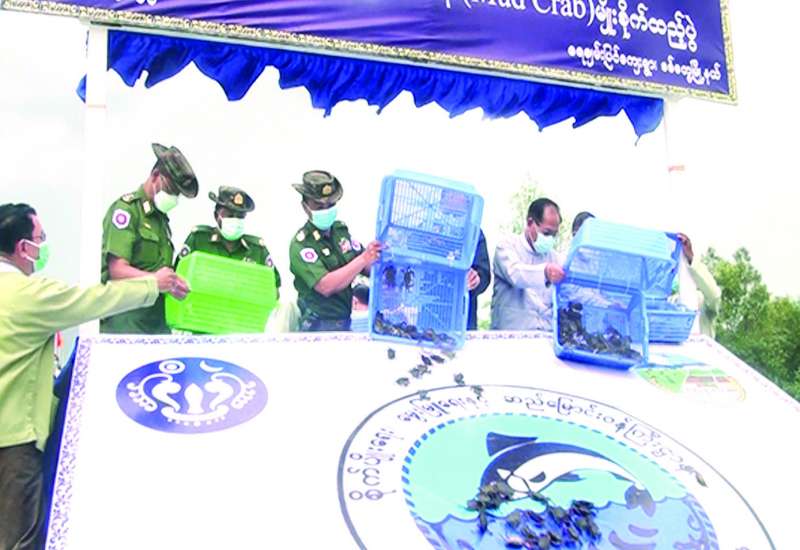 ရခိုင်ပြည်နယ် ငါးလုပ်ငန်းဦးစီးဌာန၏ ရွှံ့ကဏန်း မျိုးစိုက်ထည့်ခြင်းကို ယနေ့နံနက်ပိုင်းက စစ်တွေမြို့ ရေချမ်းပြင်ကျေးရွာ ကြွီတဲချောင်းကမ်းနံဘေး၌ ပြုလုပ်ရာ ရခိုင်ပြည်နယ် ဝန်ကြီးချုပ် ဒေါက်တာ အောင်ကျော်မင်း၊ အနောက်ပိုင်းတိုင်းစစ်ဌာနချုပ် တိုင်းမှူး ဗိုလ်ချုပ် ထင်လတ်ဦးနှင့် ဌာနဆိုင်ရာတာဝန် ရှိသူများ တက်ရောက်ကြသည်။