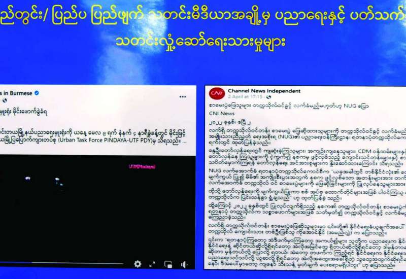 အကြမ်းဖက်အုပ်စုအဖြစ်ကြေညာထားသော CRPH၊ NUG နှင့် ယင်းတို့၏ လက်အောက်ခံ အဖွဲ့အစည်းများ၊ ယင်းတို့နှင့်ဆက်နွှယ်နေသော အဖွဲ့အစည်းများ၊ လူပုဂ္ဂိုလ်များသည် နိုင်ငံတော် တည်ငြိမ်အေးချမ်းရေးကို ပျက်ပြားစေရန်နှင့် ပြည်သူလူထုကို အကြောက်တရားများ ဖြစ်ပေါ်စေပြီး အစိုးရယန္တရားများ ပျက်ပြားစေရန် ရည်ရွယ်လျက် လှုံ့ဆော်ခြင်း၊ ဝါဒဖြန့်ခြင်း၊ ခြိမ်းခြောက်ခြင်းများကို လူမှုကွန်ရက်များမှတစ်ဆင့် နည်းမျိုးစုံဖြင့် ပြုလုပ်လျက်ရှိပါသည်။