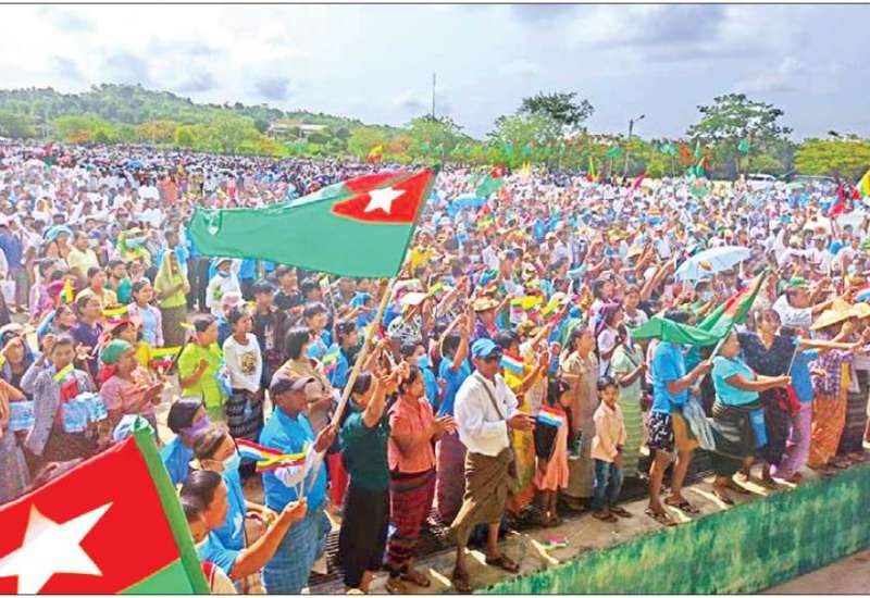 နိုင်ငံတော်စီမံအုပ်ချုပ်ရေးကောင်စီဥက္ကဋ္ဌ နိုင်ငံတော်ဝန်ကြီးချုပ် ဗိုလ်ချုပ်မှူးကြီး မင်းအောင်လှိုင်၏ တိုင်းရင်းသားလက်နက်ကိုင် အဖွဲ့အစည်းများအား ငြိမ်းချမ်းရေး ဆွေးနွေးပွဲအတွက် ဖိတ်ခေါ်မှုကို ပြည်သူများကကြိုဆို ထောက်ခံသည့်အနေဖြင့် ငြိမ်းချမ်းရေး ကြိုးပမ်းဆောင်ရွက်မှု လုပ်ငန်းများကို ကြိုဆိုထောက်ခံခြင်းနှင့် ပြည်ပစွက်ဖက် နှောင့်ယှက်မှုများအား ဆန့်ကျင်ရှုတ်ချပွဲကို ယနေ့နံနက်ပိုင်းတွင် နေပြည်တော် ကောင်စီနယ်မြေပုဗ္ဗသီရိမြို့နယ် ဥပ္ပါတသန္တိစေတီတော်တပေါင်းကွင်း၌ ကျင်းပသည်။