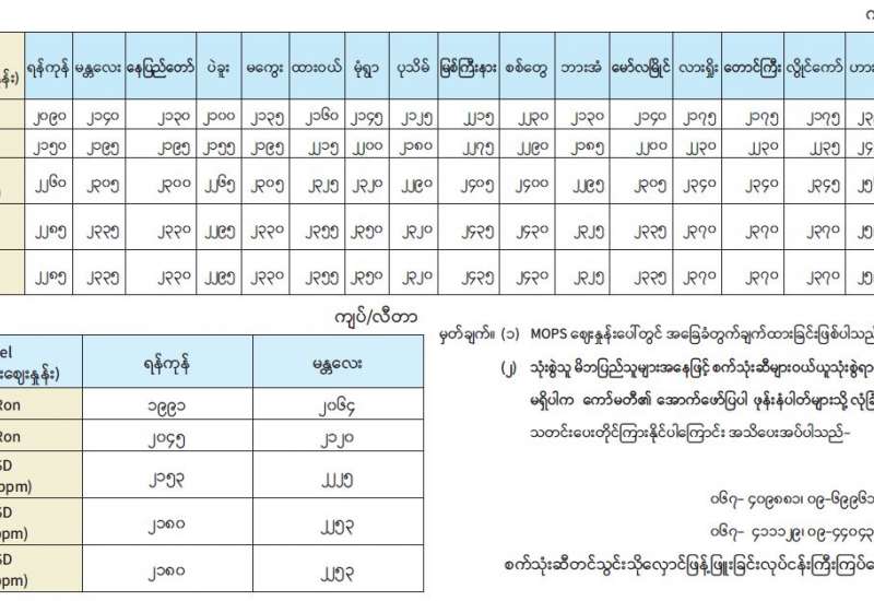 ရန်ကုန်မြို့နှင့် မန္တလေးမြို့အတွက် ရည်ညွှန်းလက်ကားဈေးနှုန်းများနှင့် ပြည်ထောင်စုနယ်မြေ နေပြည်တော်၊ တိုင်းဒေသကြီး/ပြည်နယ် မြို့တော်များအတွက် ရည်ညွှန်းလက်လီဈေးနှုန်းများ