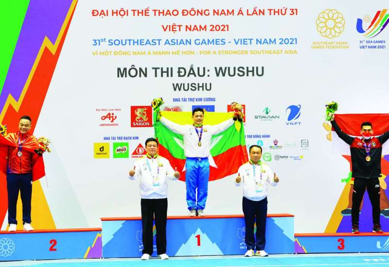 ဗီယက်နမ်နိုင်ငံ၌ အိမ်ရှင်အဖြစ်လက်ခံကျင်းပလျက်ရှိသည့် (၃၁) ကြိမ်မြောက် အရှေ့တောင်အာရှအားကစားပြိုင်ပွဲ ဝူရှူးအားကစားနည်း Nangun(နန်းကွန့်) တုတ်ရှည်ပြိုင်ပွဲ၌ မောင်သိန်းသန်းဦးမှ ဝင်ရောက်ယှဉ်ပြိုင်ခဲ့ရာ မြန်မာနိုင်ငံအတွက် စတုတ္ထမြောက်ရွှေတံဆိပ်ဆုကို ထိုက်ထိုက်တန်တန်ထပ်မံဆွတ်ခူးရရှိခဲ့သည့်အတွက် နိုင်ငံတော်စီမံအုပ်ချုပ်ရေးကောင်စီဥက္ကဋ္ဌ နိုင်ငံတော်ဝန်ကြီးချုပ် ဗိုလ်ချုပ်မှူးကြီးမင်းအောင်လှိုင်မှ ရွှေတံဆိပ်ဆုရှင် မောင်သိန်းသန်းဦးအား ဂုဏ်ပြုချီးမြှင့်ငွေ US $ 3000 ကို အားကစားနှင့်လူငယ်ရေးရာဝန်ကြီးဌာန ပြည်ထောင်စုဝန်ကြီးမှ ကိုယ်စားပေးအပ်ချီးမြှင့်သည်။