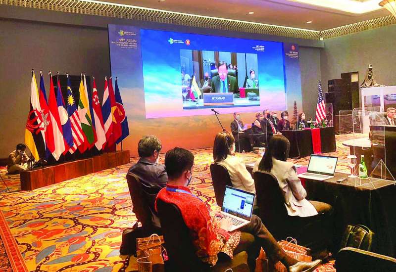 (၁၅)ကြိမ်မြောက် အာဆီယံကျန်းမာရေးဝန်ကြီးများအစည်းအဝေးနှင့် ဆက်စပ်အစည်းအဝေးများ၏ ဒုတိယနေ့ကို ၂၀၂၂ ခုနှစ် မေ ၁၅ ရက်တွင် အင်ဒိုနီးရှားနိုင်ငံ ဘာလီမြို့ Conrad Hotel Bali ၌ ဆက်လက်ကျင်းပပြုလုပ်ခဲ့ရာ ကျန်းမာရေးဝန်ကြီးဌာန ပြည်ထောင်စုဝန်ကြီး ဒေါက်တာသက်ခိုင်ဝင်း၊ အာဆီယံအဖွဲ့ဝင်နိုင်ငံများ၊ ဆွေးနွေးဖက်နိုင်ငံများဖြစ်သည့် တရုတ်ပြည်သူ့သမ္မတနိုင်ငံ၊ ကိုရီးယားသမ္မတနိုင်ငံ၊ ဂျပန်နိုင်ငံတို့မှ ကျန်းမာရေးဝန်ကြီးများ၊ ဒုတိယဝန်ကြီးများ တက်ရောက်ခဲ့သည်။