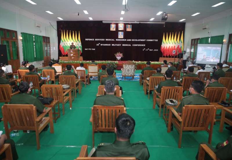 (၂၉) ကြိမ်မြောက် မြန်မာ့တပ်မတော်ဆေးပညာဆိုင်ရာ နှီးနှောဖလှယ်ပွဲ တတိယနေ့ကို ယနေ့နံနက်ပိုင်းတွင် နေပြည်တော်ရှိ တပ်မတော်ဆေးရုံကြီး (ခုတင် ၁၀၀၀) နှင့် ရန်ကုန်တိုင်းဒေသကြီး၊ မင်္ဂလာဒုံမြို့နယ်ရှိ တပ်မတော်အရိုးရောဂါအထူးကု ဆေးရုံကြီး (ခုတင် ၅၀၀) တို့၌ Online Hybrid စနစ်ဖြင့် တစ်ပြိုင်နက်တည်း ဆက်လက် ကျင်းပပြုလုပ်ရာ တပ်မတော်ဆေးသုတေသနနှင့် ဖွံ့ဖြိုးတိုးတက်ရေးကော်မတီဥက္ကဋ္ဌ၊ ဆေးဝန်ထမ်း ညွှန်ကြားရေးမှူးရုံး၊ ညွှန်ကြားရေးမှူး ဗိုလ်ချုပ်ကိုကိုလွင်၊ ဆေးဝန်ထမ်း တပ်ဖွဲ့မှ တပ်မတော်အရာရှိကြီးများ၊ ပါရဂူများ၊ ဆေးမှူးများ၊ သူနာပြုအရာရှိများ၊ သူနာပြုများ၊ နိုင်ငံတကာမှ ဆေးပညာရှင်များ၊ ဆေးဝန်ထမ်းတပ်ဖွဲ့မှ အငြိမ်းစား အရာရှိကြီးများ၊ ဖိတ်ကြားထားသူများနှင့် စိတ်ပါဝင်စားသူများ တက်ရောက်ကြသည်။