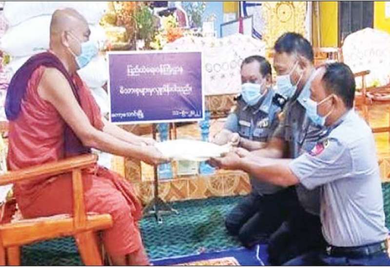 ပြည်ထဲရေးဝန်ကြီးဌာန တပ်ဖွဲ့ဝင်/ဝန်ထမ်း အရာထမ်း၊ အမှုထမ်းမိသားစုများက မြို့နယ်အသီးသီးရှိ ဘုန်းတော်ကြီးကျောင်းများသို့ ဆွမ်းဆန်တော်များ ဆက်ကပ် လှူဒါန်းခြင်းကို ဆောင်ရွက်လျက်ရှိသည်။