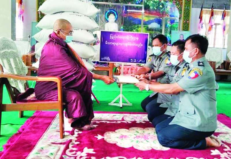 ပြည်ထဲရေးဝန်ကြီးဌာနတပ်ဖွဲ့ ဝင်/ဝန်ထမ်း အရာထမ်း၊ အမှုထမ်း မိသားစုများက မြို့နယ်အသီးသီးရှိ ဘုန်းတော်ကြီးကျောင်းများသို့ ဆွမ်းဆန်တော်များဆက်ကပ် လှူဒါန်းလျက်ရှိသည်