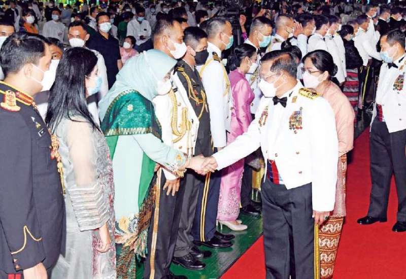 နိုင်ငံတော်စီမံအုပ်ချုပ်ရေးကောင်စီဥက္ကဋ္ဌ တပ်မတော်ကာကွယ်ရေးဦးစီးချုပ် ဗိုလ်ချုပ်မှူးကြီး မင်းအောင်လှိုင်နှင့် ဇနီး ဒေါ်ကြူကြူလှတို့က တည်ခင်းဧည့်ခံသည့် ၂၀၂၂ ခုနှစ်၊ (၇၇)နှစ်မြောက် တပ်မတော်နေ့ အထိမ်းအမှတ် ဧည့်ခံပွဲနှင့် ဂုဏ်ပြုညစာစားပွဲအခမ်းအနားကို ယနေ့ညပိုင်းတွင် နေပြည်တော်ရှိ ဇေယျာသီရိဗိမာန် ဥပစာရင်ပြင်၌ ကျင်းပပြုလုပ်သည်။
