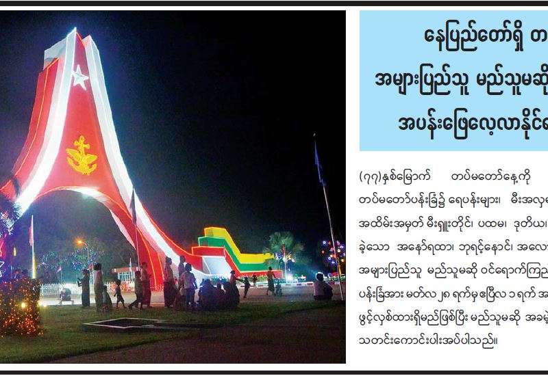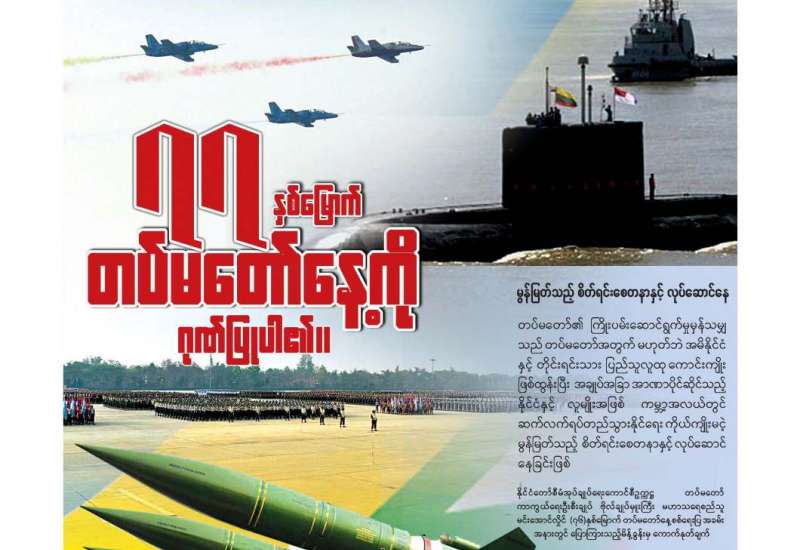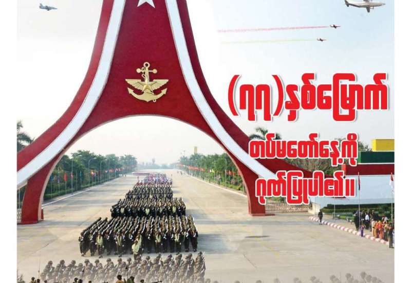 ၂၀၂၂ ခုနှစ် မတ်လ ၂၇ ရက်နေ့သည် (၇၇)နှစ်မြောက် တပ်မတော်နေ့ဖြစ်သည်။ လွတ်လပ်ရေး ကြိုးပမ်းမှုနှင့်အတူ သန္ဓေတည် မွေးဖွားလာသော တပ်မတော်သည် (၇၇)နှစ်တိုင်တိုင် နိုင်ငံတော်နှင့် တိုင်းရင်းသားပြည်သူတို့ကို အလုပ်အကျွေးပြုခဲ့ပြီးဖြစ်သည်။ ရှေ့ဆက်ပြီး လည်း ပြည်ထောင်စုကြီး ထာဝစဉ်အဓွန့်ရှည်အောင် စောင့်ရှောက်ကာကွယ်ပြီး နိုင်ငံတော်နှင့်ပြည်သူကို ဆက်လက်အလုပ်အကျွေး ပြုနေဦး မည်ဖြစ်သည်။