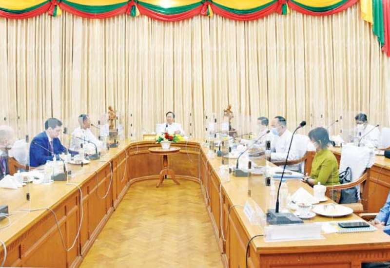 ကျန်းမာရေးဝန်ကြီးဌာန၊ ပြည်ထောင်စုဝန်ကြီး ဒေါက်တာသက်ခိုင်ဝင်းသည် ယမန်နေ့ ညနေ ၄ နာရီတွင် ဥရောပအာရှ စီးပွားရေးကော်မရှင် ကိုယ်စားလှယ်အဖွဲ့၊ ရုရှား-မြန်မာ ချစ်ကြည်ရေး အသင်းမှ စီမံချက်မန်နေဂျာ ဖြစ်သူ Mr. Ilia Nesterov ဦးဆောင်သော ကိုယ်စားလှယ်အဖွဲ့အား ကျန်းမာရေးဝန်ကြီးဌာန၏ အစည်းအဝေးခန်းမ၌ လက်ခံတွေ့ဆုံခဲ့သည်။