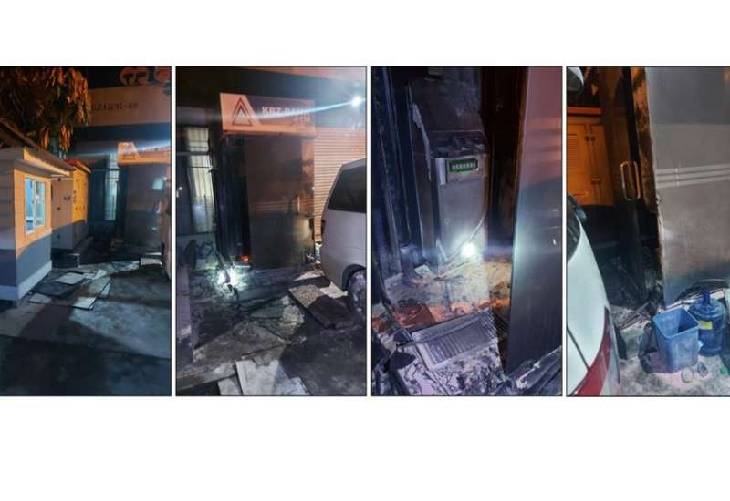ရန်ကုန်တိုင်းဒေသကြီး၊ ဒဂုံမြို့သစ်(မြောက်ပိုင်း)မြို့နယ်၊ (၃၈)ရပ်ကွက်၊ ပြည်ထောင်စု လမ်းပေါ်ရှိ “ကမ္ဘောဇ” ဘဏ်ခွဲ၌ တပ်ဆင်ထားသည့် ATM စက်အား အကြမ်းဖက်သမား ၃ ဦးက မီးရှို့ဖျက်ဆီးခဲ့ကြောင်း သိရသည်။