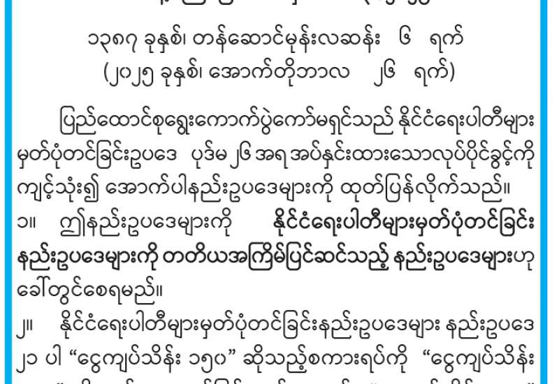 နိုင်ငံရေးပါတီများမှတ်ပုံတင်ခြင်းနည်းဥပဒေများ ပြင်ဆင်ထုတ်ပြန်