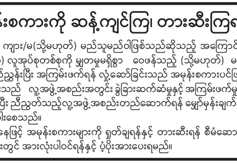 လူမျိုး၊ ကိုးကွယ်ရာဘာသာ၊ ကျား/မ(သို့မဟုတ်) မည်သူမည်ဝါဖြစ်သည်ဆိုသည့် အကြောင်းအရာတို့အပေါ်အခြေပြု၍ လူပုဂ္ဂိုလ်တစ်ဦး(သို့မဟုတ်)လူအုပ်စုတစ်စုကို မျှတမှုမရှိစွာဝေဖန်သည့် (သို့မဟုတ်)မလိုမုန်းထားမှုကိုဖော်ပြသည့် ဆက်ဆံမှုတစ်မျိုးမျိုးကိုရည်ညွှန်းပြီး အကြမ်းဖက်ရန်လှုံ့ဆော်ခြင်းသည် အမုန်းစကားပင်ဖြစ်သည်။ အမုန်းစကားပြန့်ပွားခြင်းသည် လူ့အဖွဲ့အစည်းအတွင်းခွဲခြားဆက်ဆံမှုနှင့် အကြမ်းဖက်မှုကို ဖြစ်ပေါ်စေပြီးဂုဏ်သိက္ခာရှိစွာနေထိုင်ရန်နှင့် ငြိမ်းချမ်းပြီးညီညွတ်သည့်လူ့အဖွဲ့အစည်းတည်ဆောက်ရန်မျှော်မှန်းချက်တို့ကို ထိခိုက်စေသည့်အပြင် အကျင့်စာရိတ္တကိုလည်း ထိပါးစေသည်။ သို့ဖြစ်၍ ပြည်သူများအနေဖြင့် အမုန်းစကားများကို ရှုတ်ချရန်နှင့်တားဆီးရန်စီမံဆောင်ရွက်ရမည်။ အမုန်းစကားဆန့်ကျင်သည့် လှုပ်ရှားမှုများတွင် အားလုံးပါဝင်ရန်နှင့် ပံ့ပိုးအားပေးရမည်။