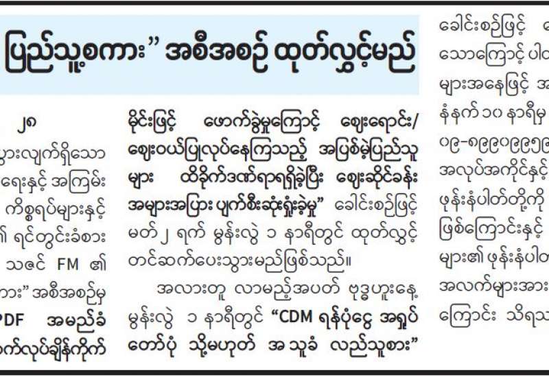 တပ်မတော်၏ စစ်ရေးဆိုင်ရာလှုပ်ရှားမှုများကို ၂၀၂၂ ခုနှစ် မတ်လ ၁ ရက်နေ့မှ ဒီဇင်ဘာလ ၃၁ ရက်နေ့အထိ ထပ်မံတိုးမြှင့် ရပ်စဲလိုက်ကြောင်း တပ်မတော်ကာကွယ်ရေးဦးစီးချုပ်ရုံးက ကြေညာချက်ထုတ်ပြန်လိုက်သည်။ တစ်နိုင်ငံလုံး ထာဝရငြိမ်းချမ်းရေးရရှိစေရေး၊ ငြိမ်းချမ်းရေးလုပ်ငန်းစဉ်များကို တိုးမြှင့်ဆောင်ရွက်နိုင်ရေး၊ မြန်မာနိုင်ငံတစ်ဝန်းလုံး၌ ကိုဗစ်-၁၉ ရောဂါ ကာကွယ်၊ ထိန်းချုပ်၊ ကုသရေးလုပ်ငန်းစဉ်များကို ထိထိရောက်ရောက် ဆောင်ရွက်နိုင်ရေးတို့ အတွက် ရည်ရွယ်၍ တပ်မတော်၏ စစ်ရေးဆိုင်ရာ လှုပ်ရှားမှုများကို နောက်ထပ် ၁၀ လတိတိ တိုးမြှင့်ရပ်စဲပေးလိုက်ခြင်းလည်းဖြစ်ရာ နိုင်ငံတော်အစိုးရ၏ လုံခြုံရေးနှင့် အုပ်ချုပ်ရေး ယန္တရားများအား နှောင့်ယှက်ထိပါးတိုက်ခိုက်မှုများ မရှိပါက ယင်းနယ်မြေဒေသများတွင် သေနတ်သံ၊ ဗုံးသံများနှင့် အနိဋ္ဌာရုံမြင်ကွင်းများ ပကတိကင်းစင် နေလိမ့်မည်ဖြစ်သည်။