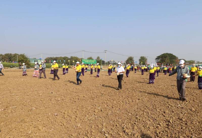 သစ်စိမ်းမြေဩဇာစိုက်ပျိုးရေး ပိုက်ဆံလျှော်မျိုးစေ့ ကြဲပက်ပွဲအခမ်းအနားကို ယနေ့ နံနက်ပိုင်းက “မျိုးစေ့ပြပွဲ ၂၀၂၂” ၏ စနစ်ကျ စက်မှုလယ်ယာမြေ ပြကွက်တွင် ကျင်းပသည်။