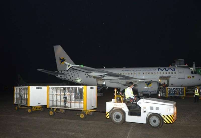 အိန္ဒိယတပ်မတော်မှ မြန်မာ့တပ်မတော်သို့ လှူဒါန်းသော COVISHIELD ကိုဗစ်-၁၉ ကာကွယ်ဆေး doses (၁)သိန်း တင်ဆောင်လာသော မြန်မာအပြည်ပြည်ဆိုင်ရာ လေကြောင်းလိုင်း(MAI) ခရီးစဉ်အမှတ် HM-621 လေယာဉ်သည် အိန္ဒိယနိုင်ငံ နယူးဒေလီမြို့မှ ယနေ့ညပိုင်းတွင် ရန်ကုန်အပြည်ပြည်ဆိုင်ရာ လေဆိပ်သို့ ရောက်ရှိလာသည်။