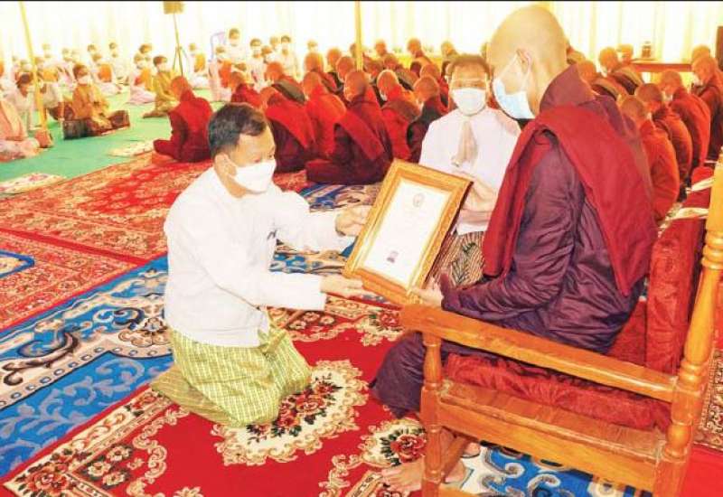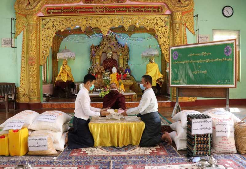ပြည်ထဲရေးဝန်ကြီးဌာန၊ တပ်ဖွဲ့ဝင်/ဝန်ထမ်း အရာထမ်း၊ အမှုထမ်းမိသားစုများသည် မြို့နယ်အသီးသီးရှိ ဘုန်းတော်ကြီးကျောင်းများသို့ ဆွမ်းဆန် တော်များ ဆက်ကပ်လှူဒါန်းလျက်ရှိသည်။