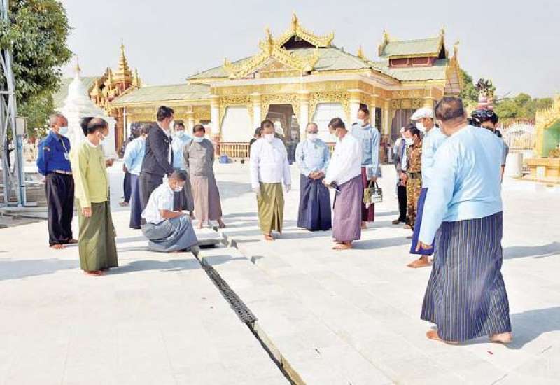 မန္တလေးတိုင်းဒေသကြီးဝန်ကြီးချုပ် ဦးမောင်ကိုသည် ယနေ့နံနက်ပိုင်းတွင် တိုင်းဒေသကြီးဝန်ကြီးများနှင့်အတူ အောင်မြေသာစံမြို့နယ် မဟာလောကမာရဇိန် ကုသိုလ်တော် ဘုရားရင်ပြင်တော် နေပူခံစကျင်ကျောက်ပြားခင်း လုပ်ငန်းပြီးစီးမှုကို လိုက်လံကြည့်ရှုကာ သတ်မှတ်ကာလအတွင်း ပြီးစီးရေး၊ လက်ရာသေသပ်စွာ ဆောင်ရွက်ရေး၊ ဘုရားဖူးပြည်သူများ စိတ်အေးချမ်းသာစွာ ဖူးမြော်နိုင်ရေး အတွက် သန့်ရှင်းသာယာလှပရေး ဆောင်ရွက်ရန်နှင့် ဘုရားဘက်စုံ ဖွံ့ဖြိုးတိုးတက်ရေးလုပ်ငန်းများ ဆောင်ရွက်ရာတွင် လုပ်ထုံးလုပ်နည်းနှင့်အညီ ဆောင်ရွက်ရေးတို့ကို မှာကြားပြီး လိုအပ်သည်များ ပေါင်းစပ်ဆောင်ရွက်ပေးသည်။
