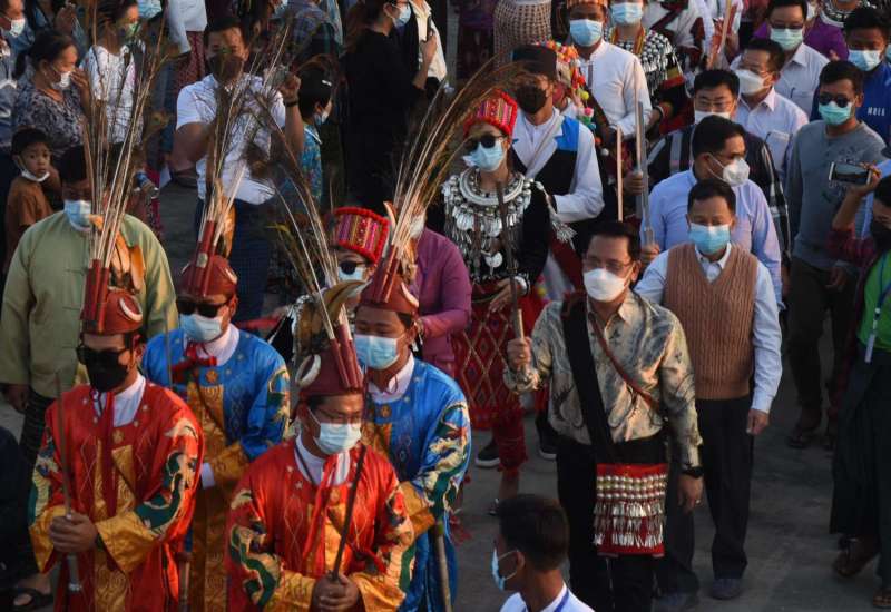နေပြည်တော်၌ ကျင်းပသည့် (၇၅)နှစ်မြောက် စိန်ရတုပြည်ထောင်စုနေ့ ဂုဏ်ပြုအခမ်းအနားတွင် ပါဝင်ဆင်နွှဲခဲ့ကြသည့် ကချင်ပြည်နယ် ရိုးရာယဉ်ကျေးမှု အဖွဲ့သည် ယနေ့ နံနက်ပိုင်းတွင် နေပြည်တော်ရှိ အထင်ကရနေရာများသို့ သွားရောက် လေ့လာကြသည်။