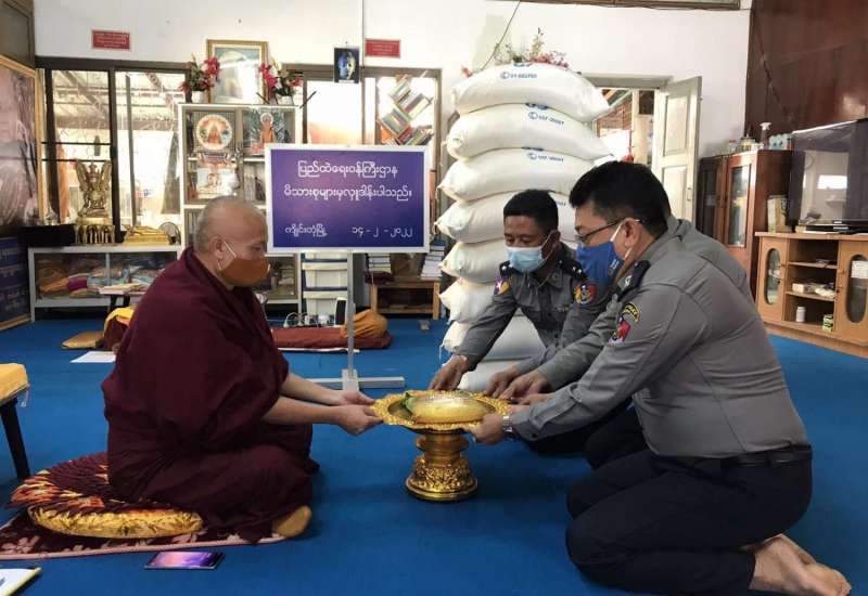 ပြည်ထဲရေးဝန်ကြီးဌာန၊ တပ်ဖွဲ့ဝင်/ဝန်ထမ်း အရာထမ်း၊ အမှုထမ်းမိသားစုများက မြို့နယ်အသီးသီးရှိ ဘုန်းတော်ကြီးကျောင်းများသို့ ဆွမ်းဆန်တော်များ ဆက်ကပ်လှူဒါန်းခြင်းကို ဆောင်ရွက်လျက်ရှိသည်။