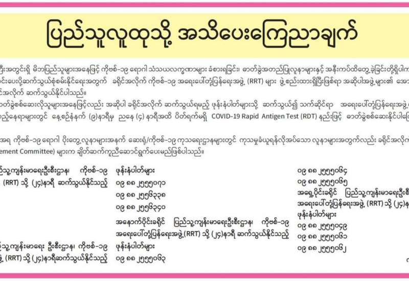 တိုင်းဒေသကြီးနှင့် ပြည်နယ်အသီးသီးတို့၌ သံဃာတော်များ၊ သာသနာနွယ်ဝင်သီလရှင်များ၊ ဘာသာရေး ခေါင်းဆောင်များအပါအဝင် လူမျိုးမရွေး ဘာသာမရွေး အသက် ၄၀ နှစ်အထက် ဒေသခံပြည်သူများ၊ အကျဉ်းသား၊ အကျဉ်းသူများ၊ မသန်စွမ်းသူများ၊ တိုင်းရင်းသား လက်နက်ကိုင်အဖွဲ့များ၊ နာတာရှည်ရောဂါ အခံရှိသူများ၊ ကယ်ဆယ်ရေးစခန်းများ၊ ယာယီတိုက်ပွဲရှောင် စခန်းများအတွင်းရှိ ပြည်သူများ၊ အသက် (၁၂)နှစ်အထက် အခြေခံပညာ အလယ်တန်းနှင့် အထက်တန်းအဆင့် ကျောင်းသား၊ ကျောင်းသူများ စသည့် ဦးတည်အုပ်စုများ သတ်မှတ်၍ တပ်မတော်မှ ဆေးအဖွဲ့များ၊ ပြည်သူ့ဆေးရုံများမှ ဆရာဝန်များ၊ သူနာပြုများ၊ ကျန်းမာရေးဝန်ထမ်းများနှင့် စေတနာ့ဝန်ထမ်းများက ကာကွယ်ဆေးထိုးခြင်း လုပ်ငန်းများကို အင်တိုက်အားတိုက် ဆောင်ရွက်ပေးလျက်ရှိသည်။