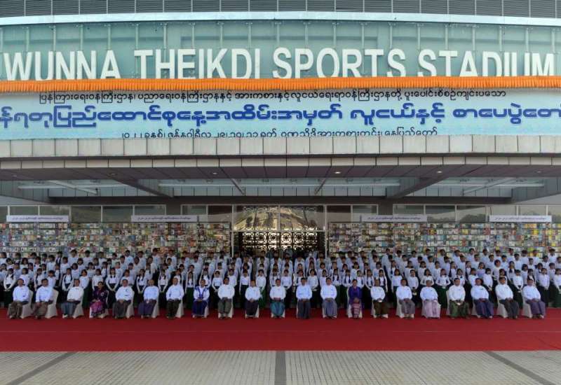 (၇၅)နှစ်မြောက် စိန်ရတုပြည်ထောင်စုနေ့ အထိမ်းအမှတ် လူငယ်နှင့်စာပေပွဲတော် ဖွင့်ပွဲအခမ်းအနားကို ယနေ့နံနက်ပိုင်းတွင် နေပြည်တော်ရှိ ဝဏ္ဏသိဒ္ဓိဘောလုံး အားကစားကွင်း၌ ကိုဗစ်-၁၉ ရောဂါကာကွယ်၊ ထိန်းချုပ်ရေး စည်းမျဉ်း၊ စည်းကမ်းများနှင့်အညီ ကျင်းပရာနိုင်ငံတော်စီမံ အုပ်ချုပ်ရေးကောင်စီဥက္ကဋ္ဌ နိုင်ငံတော်ဝန်ကြီးချုပ် ဗိုလ်ချုပ်မှူးကြီး မင်းအောင်လှိုင် တက်ရောက်ဖွင့်လှစ်ပေးသည်။
