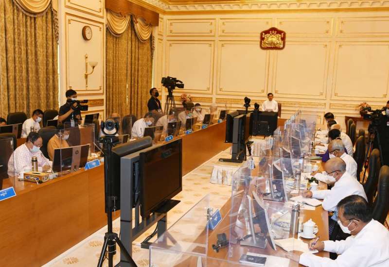 နိုင်ငံတော်စီမံအုပ်ချုပ်ရေးကောင်စီအစည်းအဝေး (၂/၂၀၂၂)ကို ယနေ့မွန်းလွဲပိုင်းတွင် နေပြည်တော်ရှိ နိုင်ငံတော်စီမံအုပ်ချုပ်ရေးကောင်စီဥက္ကဋ္ဌရုံး အစည်းအဝေး ခန်းမ၌ကျင်းပရာ နိုင်ငံတော်စီမံအုပ်ချုပ်ရေး ကောင်စီဥက္ကဋ္ဌ၊ နိုင်ငံတော်ဝန်ကြီးချုပ် ဗိုလ်ချုပ်မှူးကြီး မင်းအောင်လှိုင် တက်ရောက်ပြီး နိုင်ငံတော် စီမံအုပ်ချုပ်ရေး ကောင်စီ၏ တစ်နှစ်တာဆောင်ရွက်ချက်များနှင့် စပ်လျဉ်း၍ ရှင်းလင်း ပြောကြားသည်။