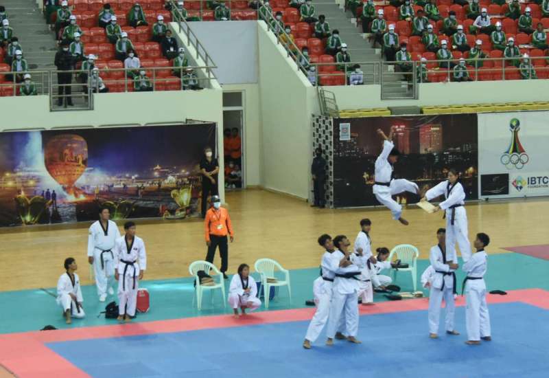 (၃၁)ကြိမ်မြောက် အရှေ့တောင်အာရှ အားကစားပြိုင်ပွဲသို့ ဝင်ရောက်ယှဉ်ပြိုင်ရန် စခန်းသွင်းလေ့ကျင့်လျက် ရှိသည့် မြန်မာ့လက်ရွေးစင်အားကစားများ၏ လေ့ကျင့် သရုပ်ပြသမှုအား ယနေ့နံနက်ပိုင်းတွင် နေပြည်တော်ရှိ ဝဏ္ဏသိဒ္ဓိအားကစားရုံ (B) ရုံ၌ ကျင်းပပြုလုပ်ရာ နိုင်ငံတော်စီမံအုပ်ချုပ်ရေးကောင်စီဥက္ကဋ္ဌ နိုင်ငံတော်ဝန်ကြီးချုပ် ဗိုလ်ချုပ်မှူးကြီး မင်းအောင်လှိုင် တက်ရောက်ကြည့်ရှုအားပေးသည်။