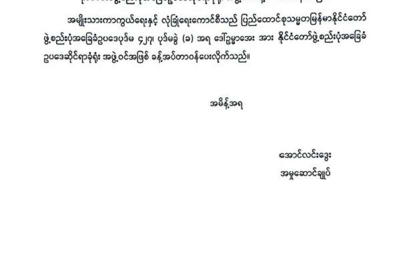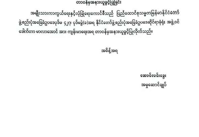 ရန်ကုန်မြို့နှင့် မန္တလေးမြို့အတွက် ရည်ညွှန်းလက်ကားဈေးနှုန်းများနှင့် ပြည်ထောင်စုနယ်မြေ နေပြည်တော်၊ တိုင်းဒေသကြီး/ပြည်နယ် မြို့တော်များအတွက် ရည်ညွှန်းလက်လီစျေးနှုန်းများ
