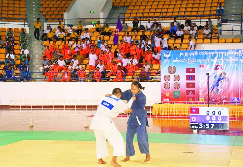 ၂၀၂၅ ခုနှစ် တပ်မတော်ကာကွယ်ရေးဦးစီးချုပ်ဒိုင်း တပ်မတော် (ကြည်း၊ ရေ၊ လေ) အမျိုးသား အမျိုးသမီး ဂျူဒိုပြိုင်ပွဲဖွင့်ပွဲကို ယနေ့မွန်းလွဲပိုင်းတွင် ရန်ကုန်တိုင်းဒေသကြီး သင်္ဃန်းကျွန်းမြို့နယ်ရှိ အမျိုးသားအားကစားပြိုင်ပွဲရုံ(၁)သုဝဏ္ဏ၌ပြုလုပ်ရာ တပ်မတော်ကာကွယ်ရေးဦးစီးချုပ် ကိုယ်စား ရန်ကုန်တိုင်းစစ်ဌာနချုပ် တိုင်းမှူး ဗိုလ်ချုပ် ပြည့်စုံလင်းနှင့် တာဝန်ရှိသူများ၊ အရာရှိ၊ စစ်သည်၊ မိသားစုများ၊ ဒိုင်အဖွဲ့ဝင်များနှင့် ပြိုင်ပွဲဝင်အားကစားသမားများ တက်ရောက် ကြသည်။