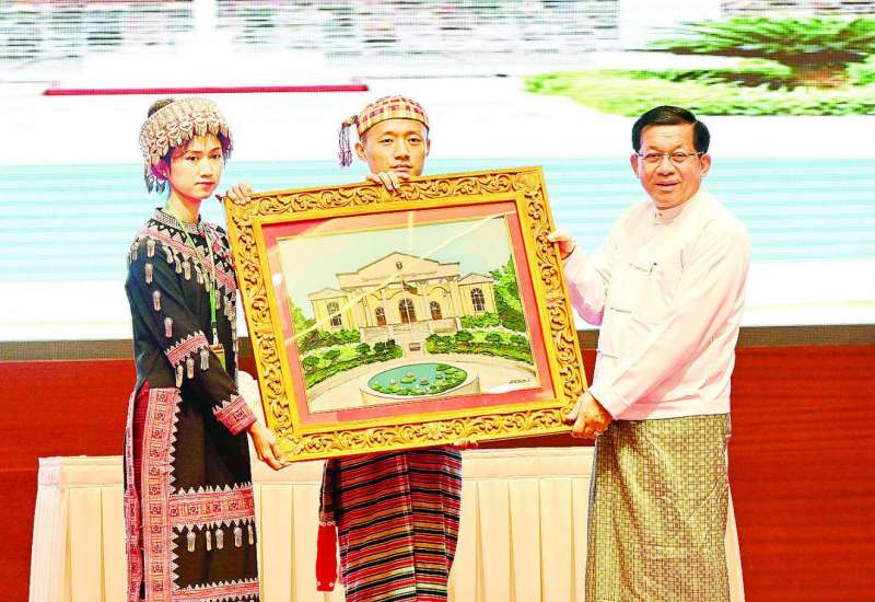 ပြည်ထောင်စုသမ္မတမြန်မာနိုင်ငံတော်ယာယီသမ္မတ နိုင်ငံတော်လုံခြုံရေးနှင့်အေးချမ်း သာယာရေးကော်မရှင်ဥက္ကဋ္ဌ ဗိုလ်ချုပ်မှူးကြီး မင်းအောင်လှိုင်သည် ပြည်ထောင်စုတိုင်းရင်းသား လူမျိုးများဖွံ့ဖြိုးရေးတက္ကသိုလ် ပညာရေးဘွဲ့ ၅ နှစ်သင်တန်းအမှတ်စဉ်(၇)မှ ကျောင်းသား၊ ကျောင်းသူများကို ယနေ့နံနက်ပိုင်းတွင် နေပြည်တော်ရှိ မြန်မာအပြည်ပြည်ဆိုင်ရာကွန်ဗင်းရှင်း ဗဟိုဌာန(၁)(MICC-1)၌ တွေ့ဆုံအမှာစကားပြောကြားသည်။