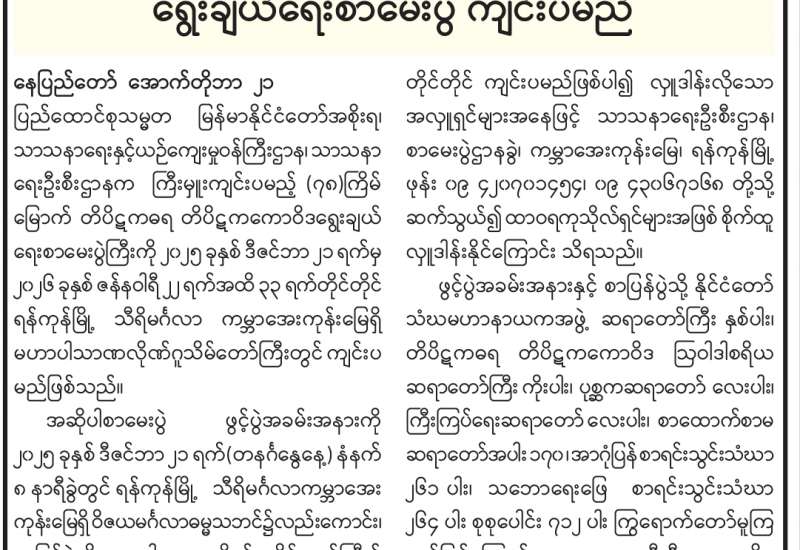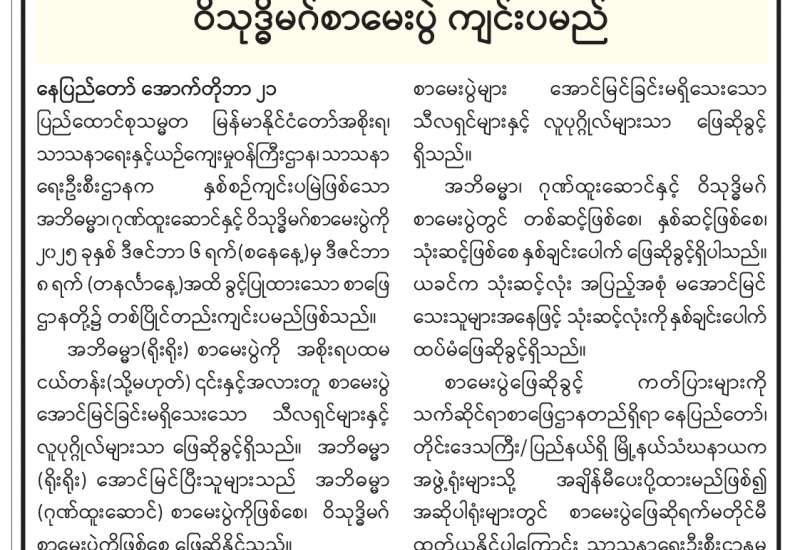 (၇၈)ကြိမ်မြောက် တိပိဋကဓရ တိပိဋကကောဝိဒရွေးချယ်ရေးစာမေးပွဲ ကျင်းပမည်