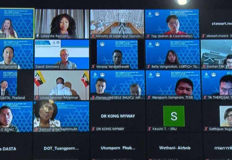 ပိုမိုကောင်းမွန်သော ခရီးသွားလုပ်ငန်း ဖွံ့ဖြိုးတိုးတက်ရေးအတွက် မူဝါဒများ ပြန်လည်ချမှတ်ခြင်း ခေါင်းစဉ်ဖြင့် ထိုင်းနိုင်ငံ၊ ခရီးသွား လုပ်ငန်းနှင့် အားကစားဝန်ကြီးဌာနမှ စီစဉ်ကျင်းပသည့် အာရှနှင့် ပစိဖိတ်ဒေသ စီးပွားရေး ပူးပေါင်းဆောင်ရွက်မှု ဆွေးနွေးပွဲ -၂၀၂၂ (APEC Symposium 2022) ကို ဇန်နဝါရီ ၂၅ ရက်မှ ၂၆ ရက်အထိ ကျင်းပရာ ဟိုတယ်နှင့် ခရီးသွားလာရေးဝန်ကြီးဌာန၊ ပြည်ထောင်စုဝန်ကြီး ဒေါက်တာဌေးအောင်က ဗီဒီယိုကွန်ဖရင့်စနစ်ဖြင့် တက်ရောက်သည်။
