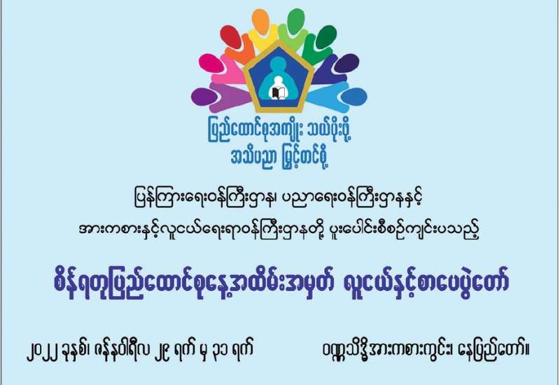 ပြည်ထောင်စုရာထူးဝန်အဖွဲ့၏ ကြီးကြပ်လမ်းညွှန်မှုဖြင့် ဝန်ထမ်းအဖွဲ့အစည်း ဒုတိယအကြီးအမှူး စီမံခန့်ခွဲမှုသင်တန်းအမှတ်စဉ်(၈)နှင့် အဆင့်မြင့်အရရာထမ်းစီမံခန့်ခွဲမှုသင်တန်း အမှတ်စဉ်(၉)တို့၏ သင်တန်းဖွင့်ပွဲအခမ်းအနားကို ယနေ့ နံနက် ၉ နာရီက မန္တလေးတိုင်းဒေသကြီး ပြင်ဦးလွင်မြို့နယ် ဗဟိုဝန်ထမ်းတက္ကသိုလ်(အထက်မြန်မာပြည်) နီလာခန်းမ၌ ကျင်းပသည်။