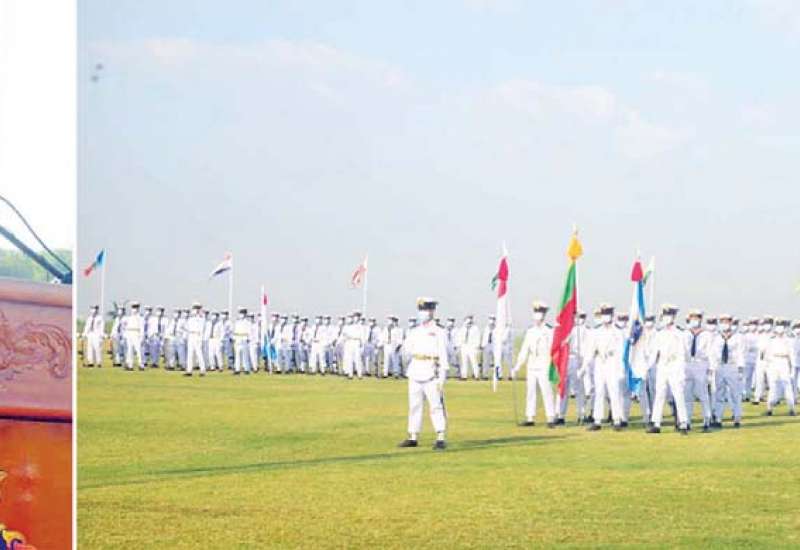တပ်မတော်(ရေ)အရာရှိငယ် (စီမံခန့်ခွဲရေး)သင်တန်း အမှတ်စဉ်(၈၁)နှင့် တပ်မတော် (ရေ)အရာရှိငယ် (အင်ဂျင်နီယာ)သင်တန်း အမှတ်စဉ်(၅၅)သင်တန်းဆင်း ဂုဏ်ပြုစစ်ရေးပြ အခမ်းအနားကို ယနေ့နံနက်ပိုင်းတွင် သန်လျင်တပ်နယ်ရှိရေတပ် လေ့ကျင့်ရေးဌာနချုပ်စစ်ရေး ပြကွင်း၌ ကျင်းပရာ နိုင်ငံတော်စီမံအုပ်ချုပ်ရေး ကောင်စီဥက္ကဋ္ဌ တပ်မတော်ကာကွယ်ရေး ဦးစီးချုပ်ကိုယ်စား ကာကွယ်ရေးဦးစီးချုပ်(ရေ) ဗိုလ်ချုပ်ကြီး ဇေယျကျော်ထင်မိုးအောင် တက်ရောက်မိန့်ခွန်း ပြောကြားသည်။