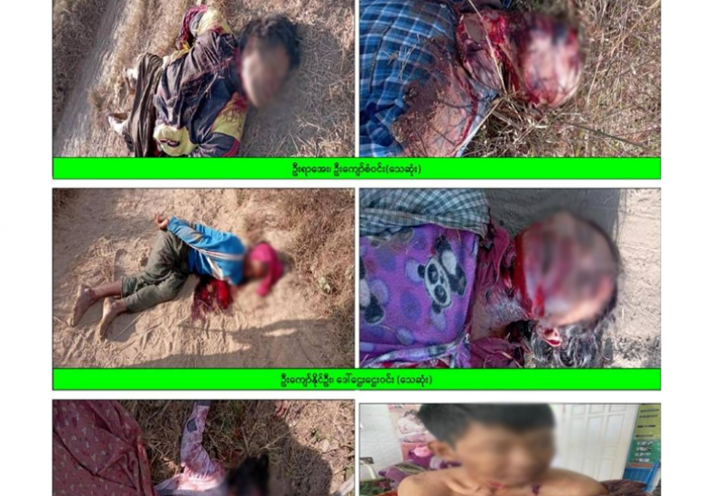 စစ်ကိုင်းတိုင်းဒေသကြီး၊ မင်းကင်းမြို့နယ်၌ PDF အမည်ခံအကြမ်းဖက်လက်နက်ကိုင် အဖွဲ့က အပြစ်မဲ့အရပ်သားပြည်သူ အမျိုးသား ၄ ဦး၊ အမျိုးသမီး ၂ ဦးတို့အား ဖမ်းဆီးခေါ်ဆောင် သွားပြီး သတ်ဖြတ်ခဲ့ရာမှ အမျိုးသား ၃ ဦးနှင့် အမျိုးသမီး ၂ ဦးသေဆုံး၍ အမျိုးသား ၁ ဦး ဒဏ်ရာ ရရှိခဲ့ကြောင်းသိရသည်။