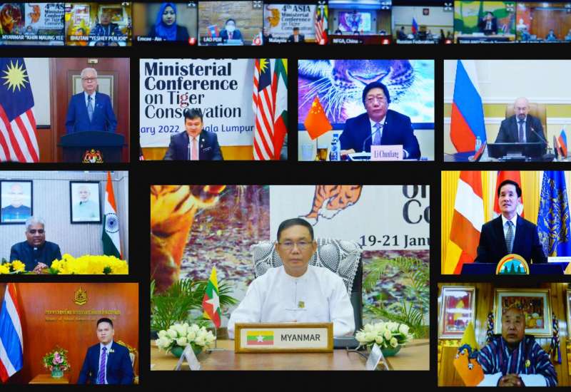 မလေးရှားနိုင်ငံက အိမ်ရှင်အဖြစ် လက်ခံကျင်းပသည့် စတုတ္ထအကြိမ်မြောက် အာရှဒေသတွင်း ဝန်ကြီးများအဆင့် ကျားထိန်းသိမ်းရေးညီလာခံကို ယနေ့ မွန်းလွဲပိုင်းတွင် ဗီဒီယိုကွန်ဖရင့်ဖြင့် ကျင်းပရာ သယံဇာတနှင့် သဘာဝပတ်ဝန်းကျင်ထိန်းသိမ်းရေး ဝန်ကြီးဌာန ပြည်ထောင်စုဝန်ကြီး ဦးခင်မောင်ရီနှင့် ကိုယ်စားလှယ်များ တက်ရောက်ကြသည်။