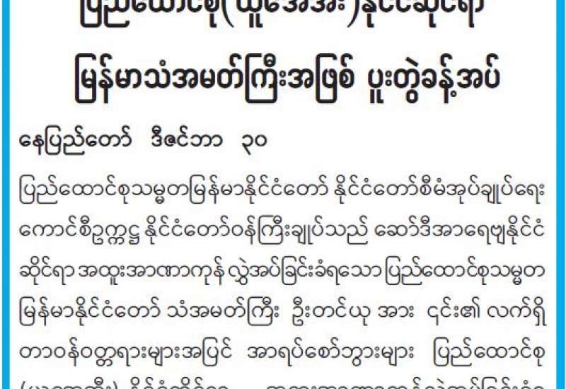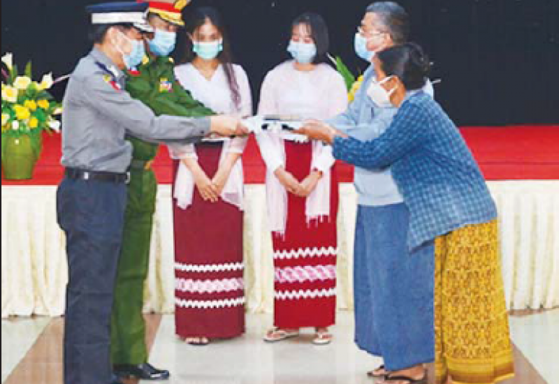 ဒီဇင်ဘာလ ၁၅ ရက်တွင် စစ်ကိုင်းတိုင်းဒေသကြီး၊ တန့်ဆည်မြို့နယ်၊ ဒေါင့်ကြီးကျေးရွာ၌ PDF အမည်ခံ အကြမ်းဖက်သူများ၏ ရက်ရက်စက်စက် လူမဆန်စွာ သတ်ဖြတ်မှုကြောင့် သေဆုံးခဲ့သူ ဒေါ်ဂျမ်းတောနှင့် ဒေါ်ခင်ဆွေမြင့်တို့၏ ငွေကြေးနှင့် လက်ဝတ်ရတနာများအား လုံခြုံရေးတပ်ဖွဲ့ဝင်များက သွားရောက်ရှာဖွေပေးခဲ့ပြီး မိသားစုဝင်များထံ ပြန်လည်အပ်နှံသည့် အခမ်းအနားကို ယနေ့နံနက်ပိုင်းတွင် နေပြည်တော်ရှိ ရုံးအမှတ် (၃၄)၊ စီမံကိန်းနှင့် ဘဏ္ဍာရေး ဝန်ကြီးဌာန အစည်းအဝေးခန်းမ၌ ကျင်းပပြုလုပ်သည်။