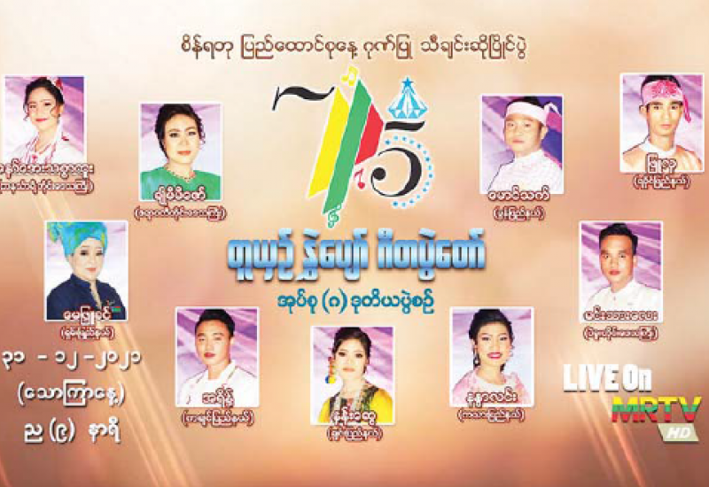 စိန်ရတု ပြည်ထောင်စုနေ့ကို ဂုဏ်ပြုသောအားဖြင့် “တူယှဉ် နွှဲပျော် ဂီတပွဲတော်” သီချင်းဆို ပြိုင်ပွဲ အုပ်စု (၃) ဒုတိယပွဲစဉ်ကို ဒီဇင်ဘာ ၃၁ရက် (သောကြာနေ့) ညတွင် မြန်မာ့အသံနှင့် ရုပ်မြင်သံကြားမှ တိုက်ရိုက် Live ရိုက်ကူးထုတ်လွှင့်မည်ဖြစ်သည်။