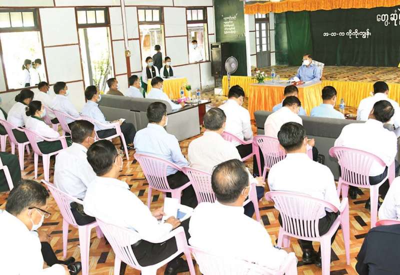 နိုင်ငံ၏အဓိကစားနပ်ရိက္ခာဖြစ်သည့် ဆန်စပါးဖူလုံရေး၊ ဒေသအတွင်း သီးနှံ ထုတ်လုပ်မှု မြင့်မားရေး နှင့် စိုက်ပျိုးမွေးမြူရေးကိုအခြေခံသည့် စီးပွားဖွံ့ဖြိုးမှု တိုးတက်လာရေး အတွက် လယ်ယာမြေ များကို တည်ဆဲဥပဒေ နည်းဥပဒေများနှင့်အညီ စီမံဆောင်ရွက်လျက်ရှိသည့် ဗဟို လယ်ယာမြေ စီမံခန့်ခွဲမှုအဖွဲ့၏ လုပ်ငန်းညှိနှိုင်းအစည်းအဝေးကို ယနေ့ မွန်းလွဲပိုင်းက စိုက်ပျိုးရေး၊ မွေးမြူရေးနှင့် ဆည်မြောင်းဝန်ကြီးဌာန ပြည်ထောင်စု ဝန်ကြီးရုံး အစည်းအဝေးခန်းမတွင် ကျန်းမာ ရေးဆိုင်ရာ ညွှန်ကြားချက်များနှင့်အညီ ကျင်းပသည်။
