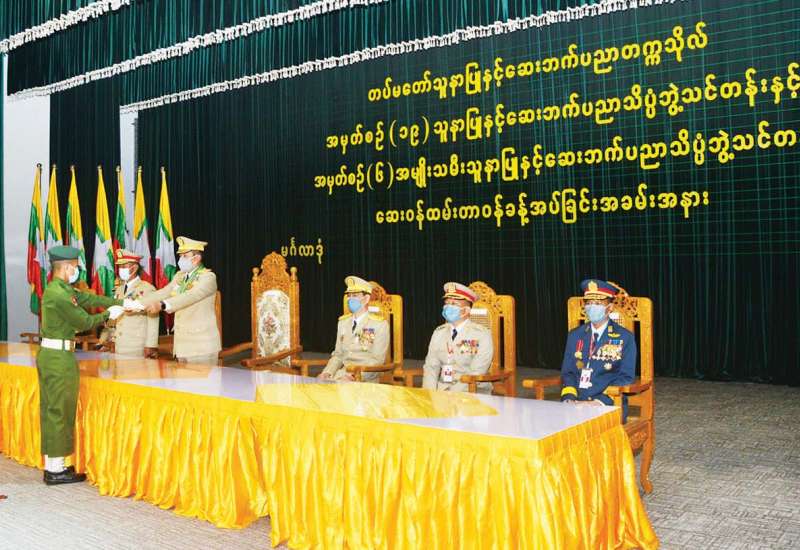 တပ်မတော်သူနာပြုနှင့် ဆေးဘက်ပညာတက္ကသိုလ်၏ သူနာပြုနှင့် ဆေးဘက်ပညာသိပ္ပံဘွဲ့ သင်တန်းအမှတ်စဉ် (၁၉) နှင့် အမျိုးသမီးသူနာပြုနှင့် ဆေးဘက် ပညာသိပ္ပံဘွဲ့ သင်တန်း အမှတ်စဉ် (၆) တို့မှ သင်တန်းဆင်း သင်တန်းသား၊ သင်တန်းသူများအား ဆေးဝန်ထမ်း တာဝန်ခန့်အပ်ခြင်း အခမ်းအနားကို ယနေ့ နံနက်ပိုင်းက တပ်မတော်သူနာပြုနှင့် ဆေးဘက် ပညာတက္ကသိုလ် ဘွဲ့နှင်းသဘင်ခန်းမ၌ ကျင်းပရာ ကာကွယ်ဦးစီးချုပ်ရုံး (ကြည်း) မှ စစ်ရေးချုပ် ဒုတိယ ဗိုလ်ချုပ်ကြီး မျိုးဇော်သိန်း၊ ကာကွယ်ရေးဦးစီးချုပ်ရုံးမှ တပ်မတော်အရာရှိကြီးများ၊ တပ်မတော်သူနာပြုနှင့် ဆေးဘက်ပညာ တက္ကသိုလ် ကျောင်းအုပ်ကြီး ဗိုလ်မှူးချုပ်ဝင်းဗိုလ်နှင့် ကျောင်းဆင်းသင်တန်းသား၊ သင်တန်းသူများ တက်ရောက်ကြသည်။