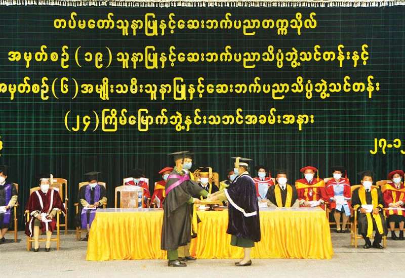 တပ်မတော်သူနာပြုနှင့် ဆေးဘက်ပညာတက္ကသိုလ်၏ (၂၄) ကြိမ်မြောက် ဘွဲ့နှင်းသဘင် အခမ်းအနားကို ယနေ့မွန်းလွဲပိုင်းတွင် ရန်ကုန်တိုင်းဒေသကြီး၊ မင်္ဂလာဒုံမြို့နယ်ရှိ တပ်မတော် သူနာပြုနှင့် ဆေးဘက်ပညာတက္ကသိုလ် ဘွဲ့နှင်းသဘင်ခန်းမ၌ ကျင်းပရာ တပ်မတော် သူနာပြုနှင့် ဆေးဘက်ပညာတက္ကသိုလ် ကျောင်းအုပ်ကြီး ဗိုလ်မှူးချုပ်ဝင်းဗိုလ်နှင့် ပညာရေး အဖွဲ့ဝင်များ တက်ရောက်ကြသည်။