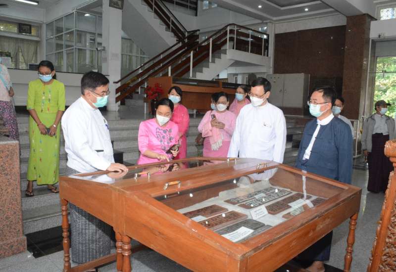 ပညာရေးဝန်ကြီးဌာန ပြည်ထောင်စုဝန်ကြီး ဒေါက်တာညွန့်ဖေသည် ဒုတိယဝန်ကြီး ဒေါက်တာ ဇော်မြင့်နှင့်အတူ ယနေ့နံနက်ပိုင်းတွင် ရန်ကုန်တက္ကသိုလ်ရှိ တက္ကသိုလ်များ ဗဟိုစာကြည့်တိုက်၊ ရုက္ခဗေဒဌာနနှင့် သုတေသနနှင့် တီထွင်ဆန်းသစ်မှု ဗဟိုဌာနတို့တွင် ကျင်းပလျက်ရှိသည့် မြန်မာနိုင်ငံ ဝိဇ္ဇာနှင့်သိပ္ပံ ပညာရှင်အဖွဲ့ (၂၁) ကြိမ်မြောက် သုတေသန ညီလာခံ စာတမ်းဖတ်ပွဲ များကို လှည့်လှည်ကြည့်ရှုသည်။