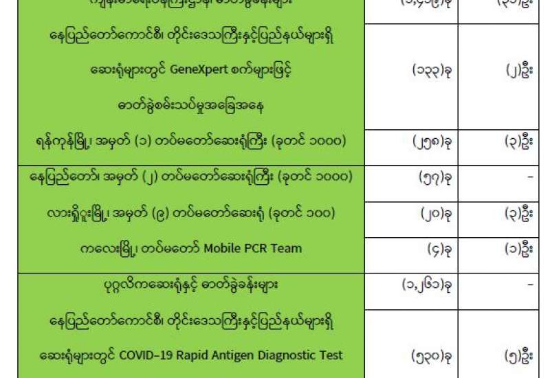 ကျန်းမာရေးဝန်ကြီးဌာနအနေဖြင့် နိုင်ငံအတွင်း ကူးစက်ဖြစ်ပွားနေသော COVID-19 ရောဂါ ကာကွယ်၊ ကုသ၊ ထိန်းချုပ်ရေး လုပ်ငန်းများကို အရှိန်အဟုန်မြှင့် ဆောင်ရွက်လျက်ရှိရာ ရောဂါ ထိန်းချုပ်ရေး လုပ်ငန်းများ အောင်မြင်နိုင်ရေးအတွက် ပြည်သူလူထုအနေဖြင့် ကျန်းမာရေး ဝန်ကြီး ဌာနမှထုတ်ပြန်ထားသော COVID-19 ရောဂါ ကာကွယ် ထိန်းချုပ်ရေးဆိုင်ရာ စည်းကမ်းများကို စနစ်တကျ လိုက်နာဆောင်ရွက်ရန်လိုအပ်ပြီး COVID-19 ကာကွယ်ဆေးထိုးနှံမှု ခံယူခြင်း အား အထူးဂရုပြု ပူးပေါင်းဆောင်ရွက်ကြရန် လိုအပ်ပါသည်။