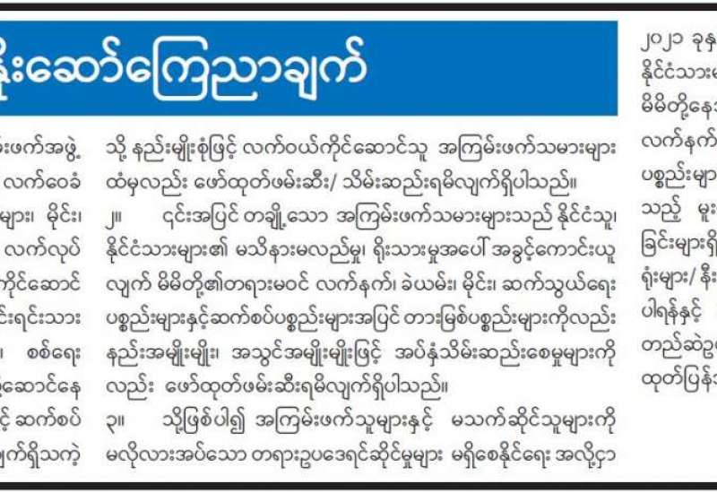 တရားလွှတ်တော်ရှေ့နေ အသိအမှတ်ပြုလက်မှတ် ပဉ္စမအကြိမ်ပေးအပ်သည့် အခမ်းအနားကို ယနေ့နံနက် ၈ နာရီတွင် ပြည်ထောင်စု တရားလွှတ်တော်ချုပ်ရုံး၌ ဗီဒီယိုကွန်ဖရင့်စနစ်ဖြင့် ကျင်းပရာ ပြည်ထောင်စုတရားလွှတ်တော်ချုပ် တရားသူကြီး ဦးမျိုးတင့် က အမှာစကား ပြောကြားသည်။