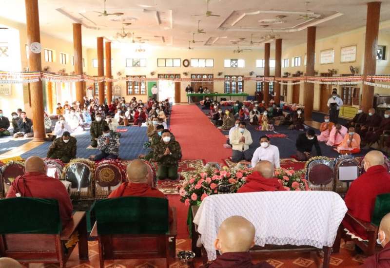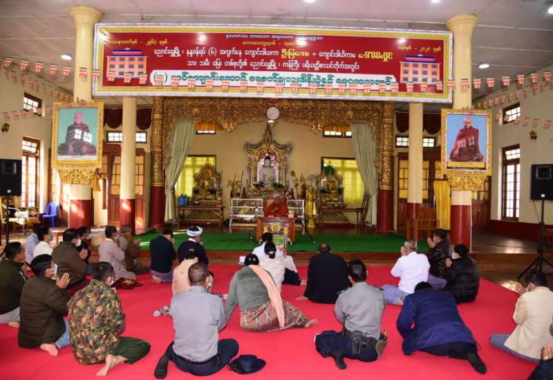 ကချင်ပြည်နယ် ကျောင်းထိုင်ဘုန်းကြီးသင်တန်းကျောင်း (၁၂)ကြိမ်မြောက် ၂ နှစ်တာ ပုံမှန် သင်တန်းဖွင့်ပွဲကို ယနေ့နံနက်ပိုင်းတွင် အဆိုပါကျောင်းထိုင် ဘုန်ကြီးသင် တန်းကျောင်းရှိ ဓမ္မဗိမာန်တော်၌ ပြုလုပ်ရာကချင်ပြည်နယ်ဝန်ကြီးချုပ် ဦးခက်ထိန်နန်၊ မြောက်ပိုင်းတိုင်း စစ်ဌာနချုပ် တိုင်းမှူး ဗိုလ်မှူးချုပ် မြတ်သက်ဦး နှင့် အဖွဲ့ဝင်များ တက်ရောက်ကြသည်။