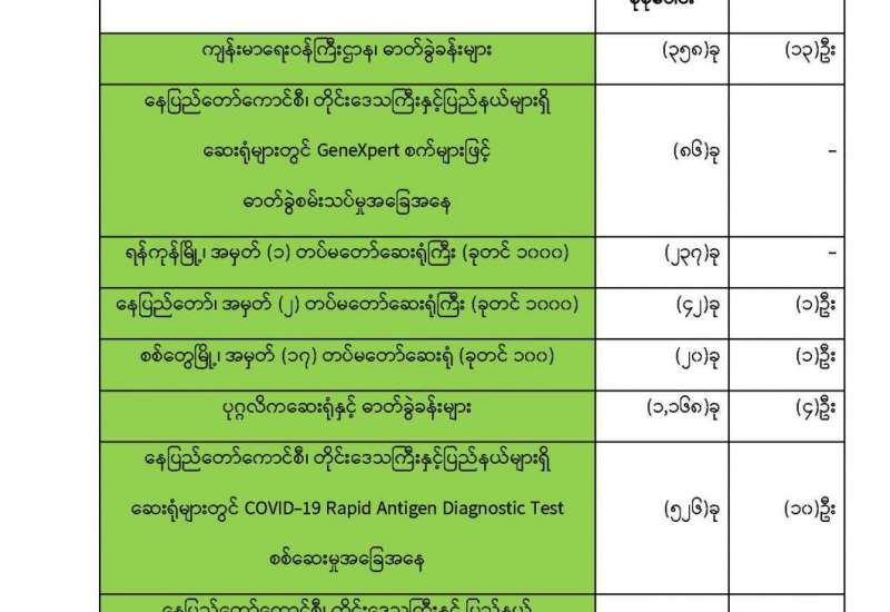 ကျန်းမာရေးဝန်ကြီးဌာနအနေဖြင့် နိုင်ငံအတွင်း ကူးစက်ဖြစ်ပွားနေသော COVID-19 ရောဂါ ကာကွယ်၊ ကုသ၊ ထိန်းချုပ်ရေးလုပ်ငန်းများကို အရှိန်အဟုန်မြှင့် ဆောင်ရွက်လျက်ရှိရာ ရောဂါ ထိန်းချုပ်ရေးလုပ်ငန်းများ အောင်မြင်နိုင်ရေးအတွက် ပြည်သူလူထုအနေဖြင့် ကျန်းမာရေးဝန်ကြီး ဌာနမှ ထုတ်ပြန်ထားသော COVID-19 ရောဂါ ကာကွယ်ထိန်းချုပ်ရေးဆိုင်ရာ စည်းကမ်းများကို စနစ် တကျ လိုက်နာဆောင်ရွက်ရန် လိုအပ်ပြီး COVID-19 ကာကွယ်ဆေးထိုးနှံမှု ခံယူခြင်းအား အထူး ဂရုပြု ပူးပေါင်းဆောင်ရွက်ကြရန် လိုအပ်ပါသည်။