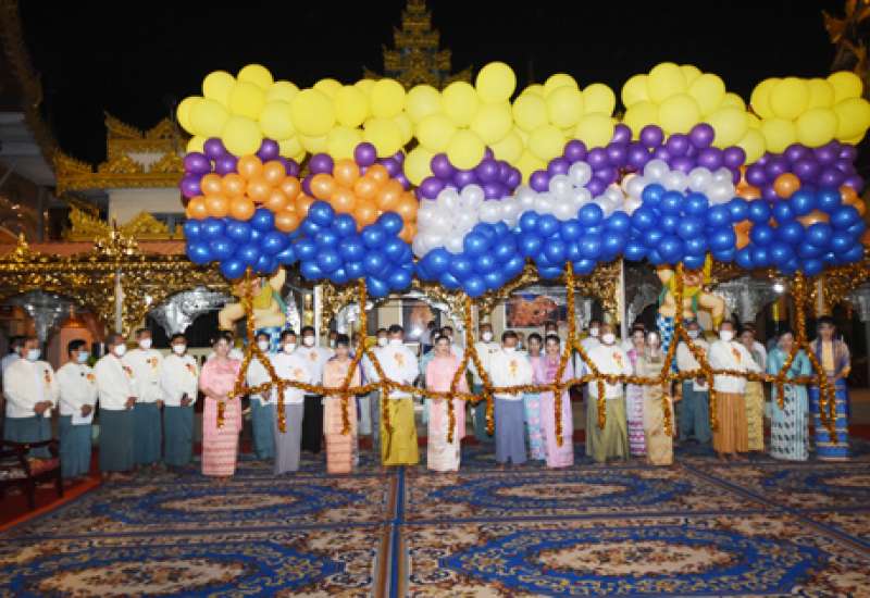 လေးဆူဓါတ်ပုံရွှေတိဂုံစေတီတော်မြတ်ကြီး လုံးတော်ပြည့်လျှပ်စစ်မီး အဆင့်မြှင့်ထွန်းညှိ ပူဇော်ခြင်းဖွင့်ပွဲ အခမ်းအနားကို ယမန်နေ့ ညနေ(၅)နာရီခွဲတွင် ရွှေတိဂုံစေတီတော်ရင်ပြင် မြောက်ဘက်၊ ချမ်းသာကြီး တန်ဆောင်းအနီး အောင်မြေ၌ ကျင်းပသည်။