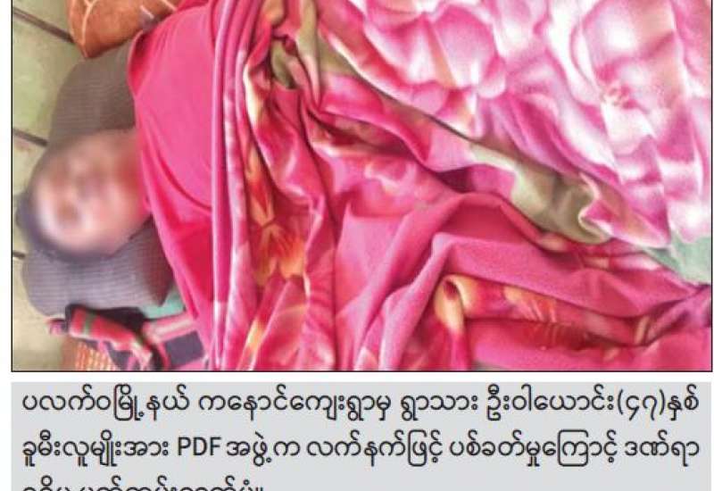 စစ်ကိုင်းတိုင်းဒေသကြီး၊ တန့်ဆည်မြို့နယ်၌ PDF အကြမ်းဖက်လက်နက်ကိုင်များ၏ ရက်စက်စွာ သေနတ်ဖြင့် ပစ်ခတ်သတ်ဖြတ်ကာ မီးရှို့ခဲ့မှုကြောင့် အပြစ်မဲ့ပြည်သူ အမျိုးသားတစ်ဦးနှင့် အမျိုးသမီးလေးဦးတို့ သေဆုံးခဲ့ပြီး နေအိမ်တစ်လုံး မီးလောင်ပျက်စီးခဲ့ကြောင်း သိရသည်။