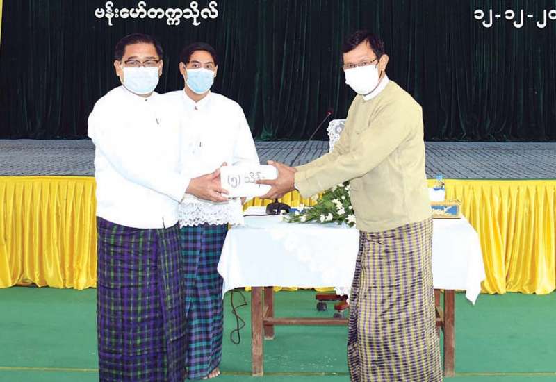 ဧရာဝတီတိုင်းဒေသကြီးအတွင်း ကိုဗစ်-၁၉ ရောဂါ ကာကွယ်၊ ထိန်းချုပ်၊ ကုသရေးလုပ်ငန်းများတွင် ပါဝင်ကူညီဆောင်ရွက်ပေးခဲ့ကြသည့် ကျန်းမာရေး ဝန်ထမ်းများအား ဂုဏ်ပြုချီးမြှင့်ခြင်းကို ယနေ့နေ့လယ်ပိုင်းတွင် အနောက်တောင် တိုင်းစစ်ဌာနချုပ်၊ ဧရာဝတီခန်းမ၌ ပြုလုပ်ရာ တိုင်းမှူး ဗိုလ်ချုပ် အောင်အောင်နှင့် တာဝန်ရှိသူများ၊ ကျန်းမာရေးဝန်ထမ်းများ တက်ရောက်ကြသည်။